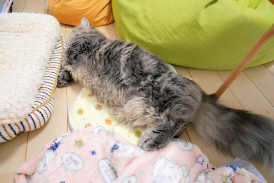 (;´・ω・)< 伸びて寝るタルトさんにはLサイズだったなw