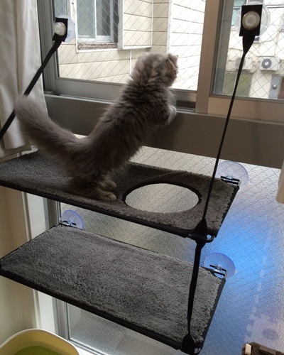 今までのハンモックは一階建て?で、外が見える窓まで高さが届かなかったので、二階建てを購入しました(*^^)v
