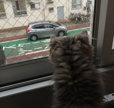 家の前は車も人通りも多いので、タルトさんには刺激的なもよう