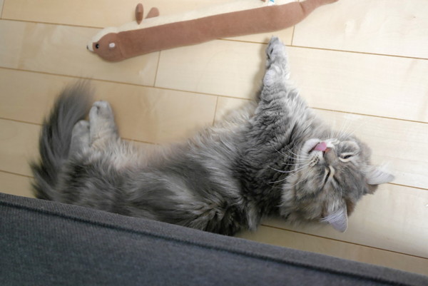 暑くなってきてフローリングの上で寝っ転がってます(*´ω`*)