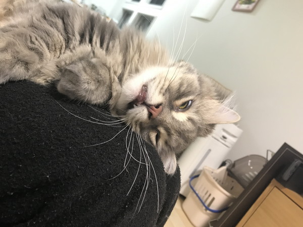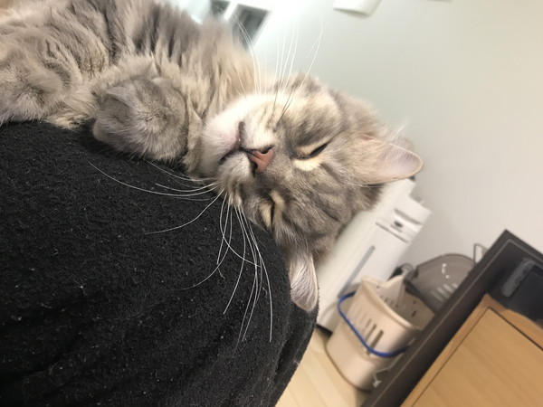 膝の上でタルトさんの首の後ろをマッサージ中(/・ω・)/