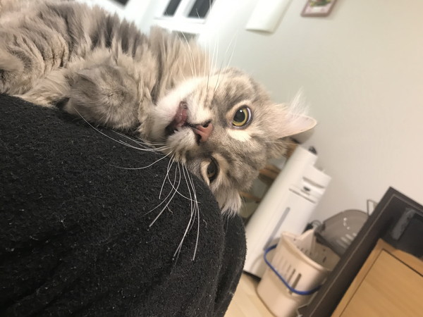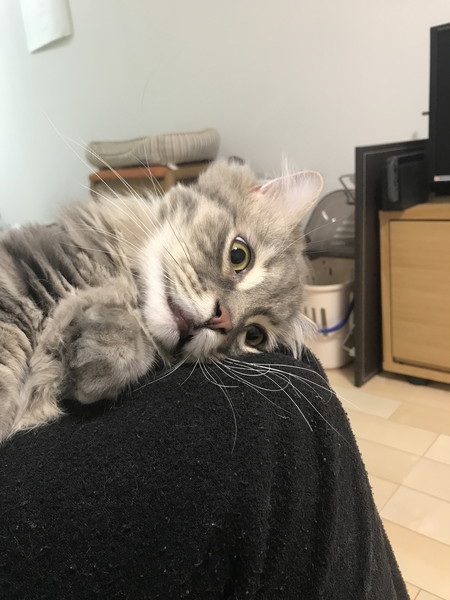 甘えたいモードの時のタルトさんは、この状態でなかなか膝から降りてくれませぬ(=゚ω゚)ノ