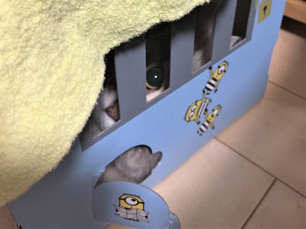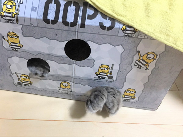 猫箱の穴から今度はお手てが2本!?Σ( ̄□ ̄;)!!
