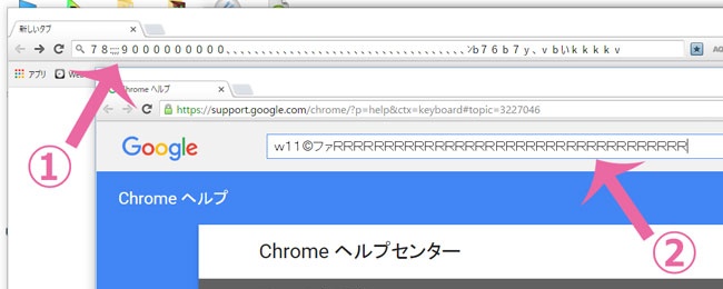 エッ(゚Д゚≡゚Д゚)!? よく見ると、↓謎の文字列(①②)が入力されている…