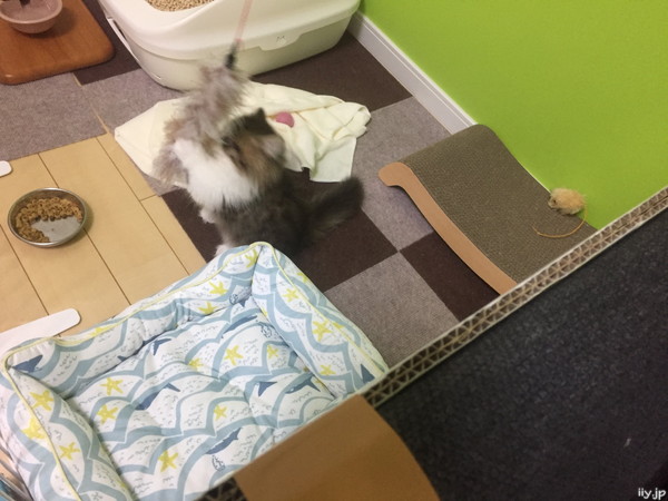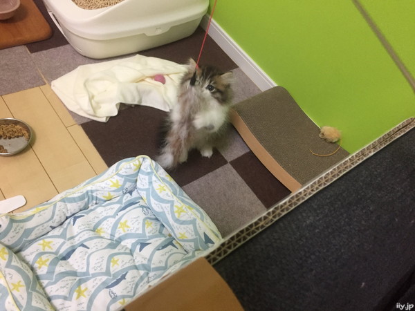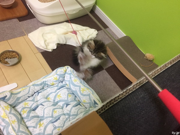 子猫のポテトさんと釣り竿型オモチャで遊んでみました(*´ω`*)
