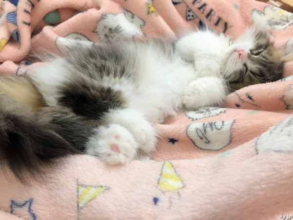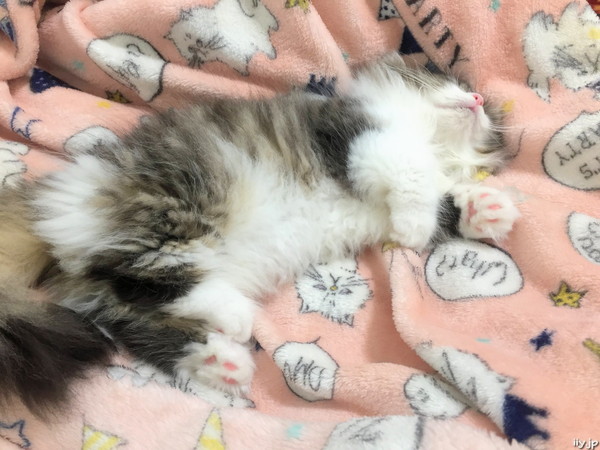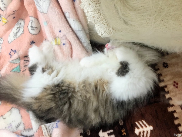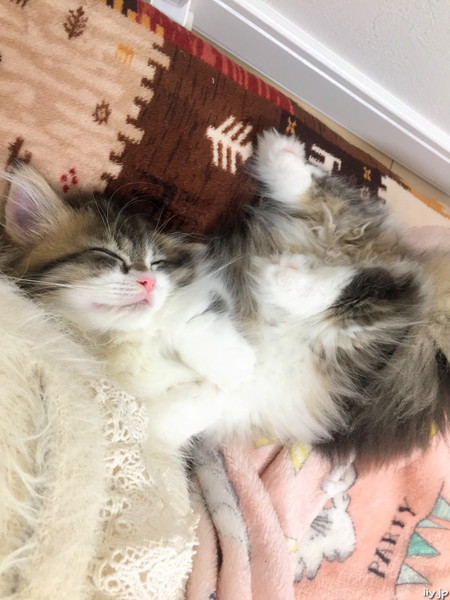 (*´д`*)< ひっついて寝られてるのでトイレに行けない