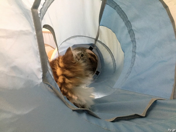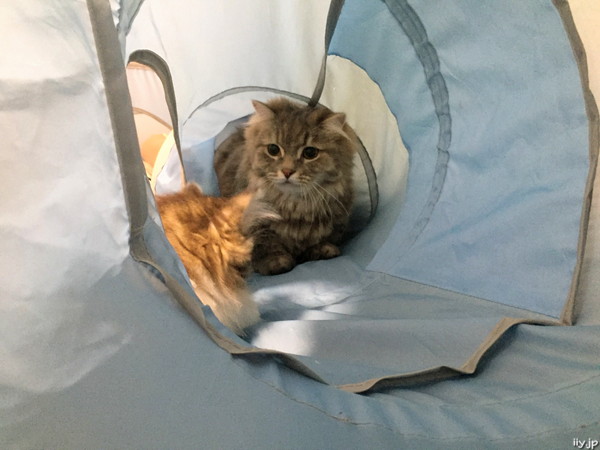 でも子猫のポテトさんがトンネルの途中の穴から顔を出してじっと監視中(;・∀・)