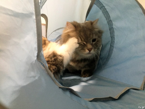 猫トンネルを通り抜けたいタルトさん(* ̄∀ ̄*)