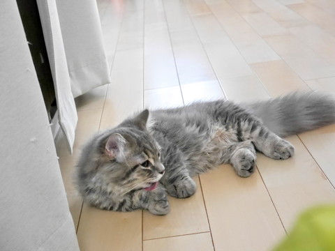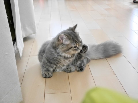 つぎにお手ての肉球をペロペロ(*´ω`*)
