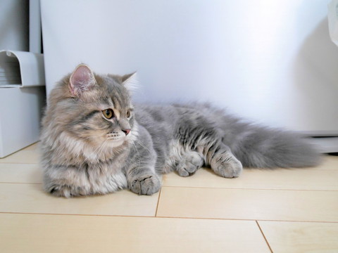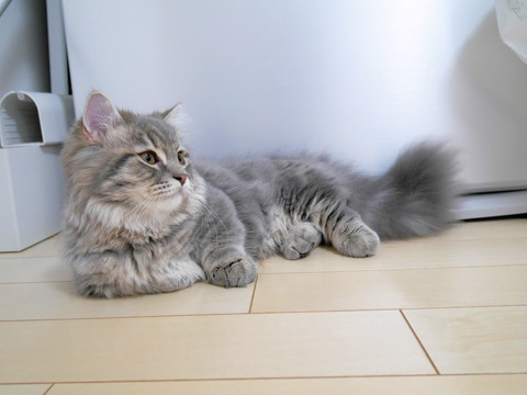 この片腕をついて座るポーズ(*´▽`*)、リラックスできるらしく、よく見かけます