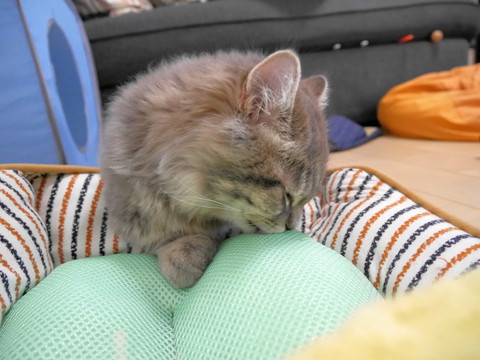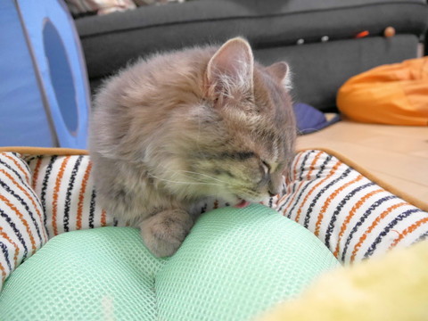 ( ´・ω・)< ご飯はキレイになったけどベッドはヨダレだらけに…