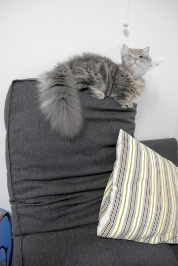 ソファー登頂にゃ!