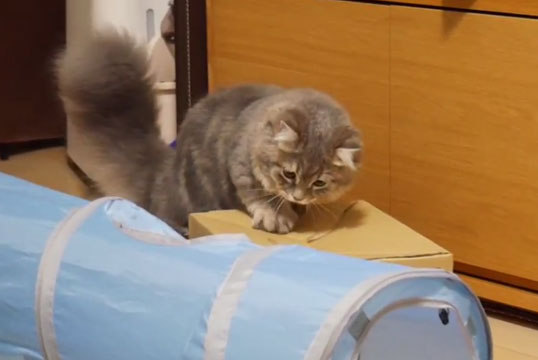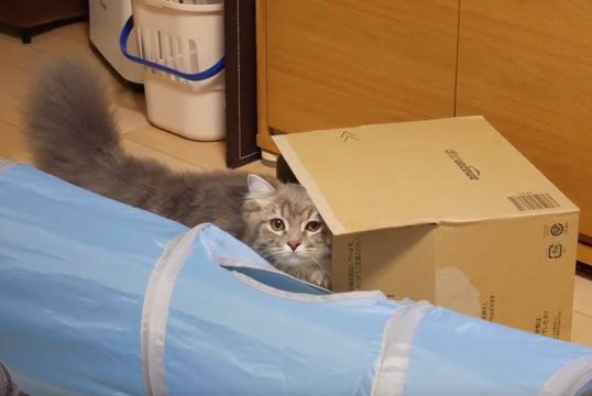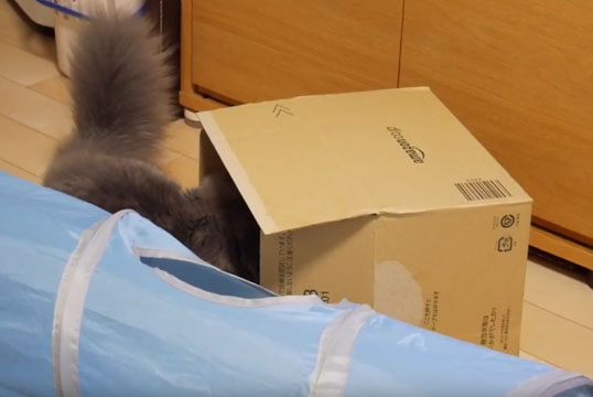 ダンボールの中身がとっても気になるようです(´・ω・`)