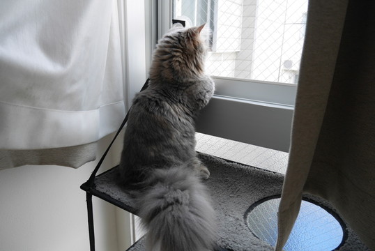 2階建てハンモックからお外見学中のタルトさん(*´▽`*)